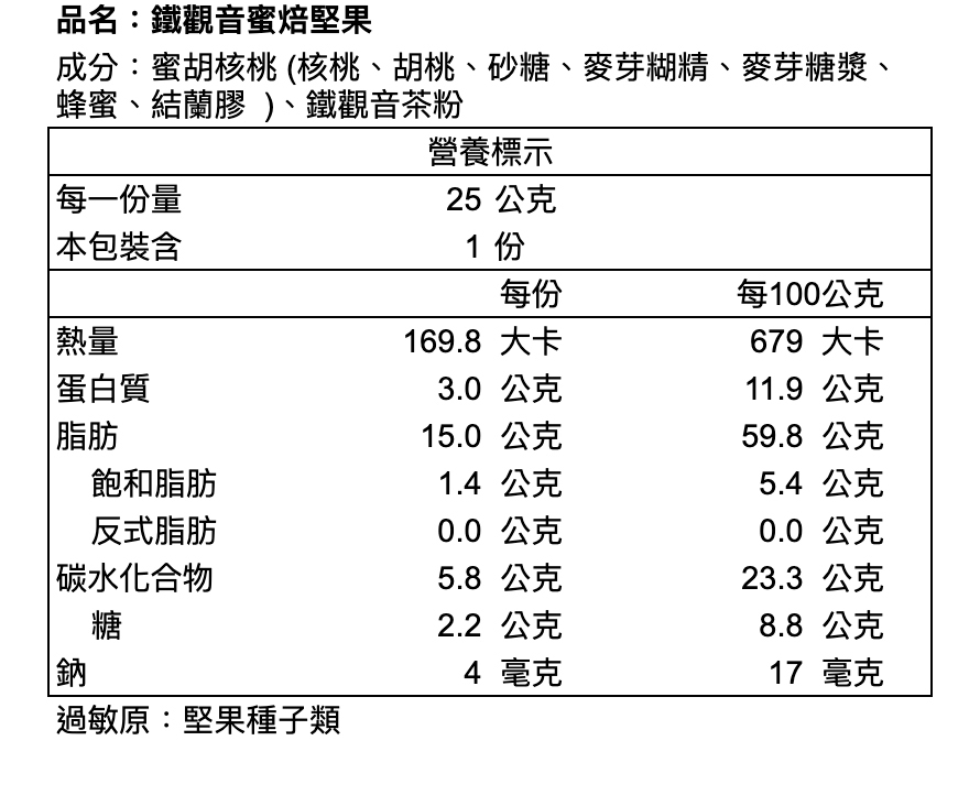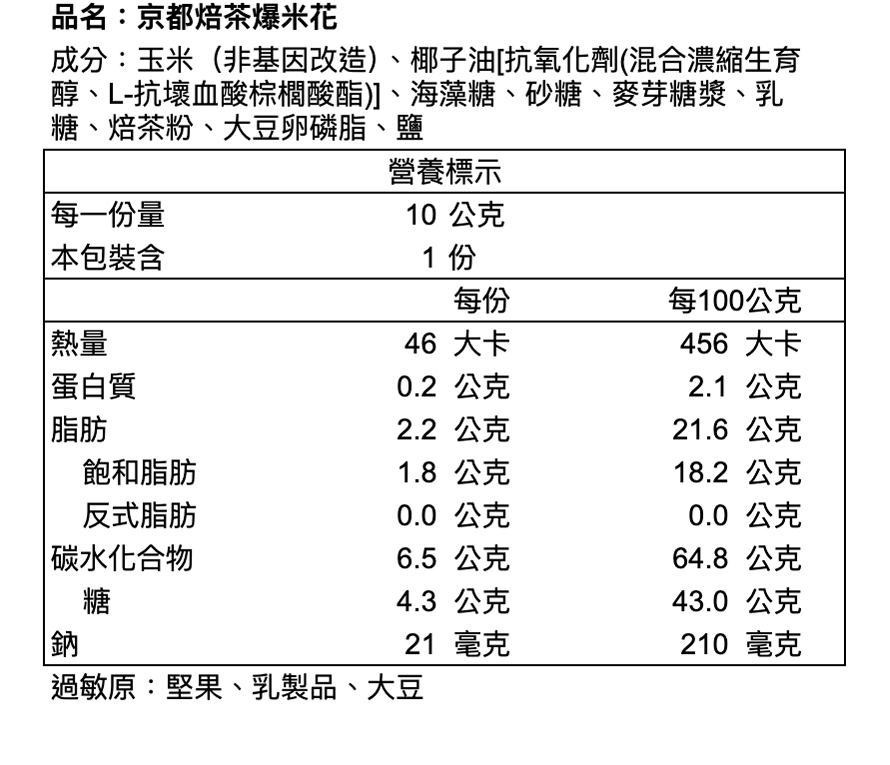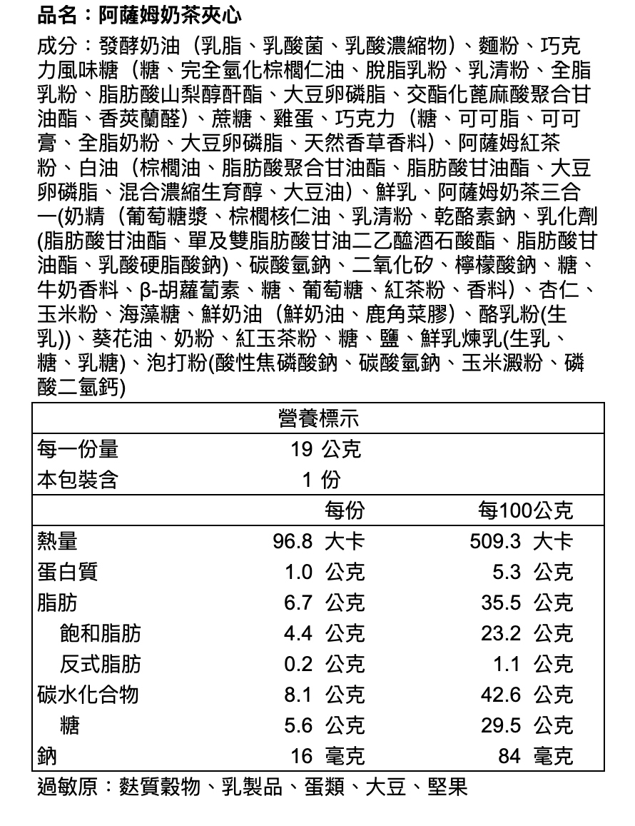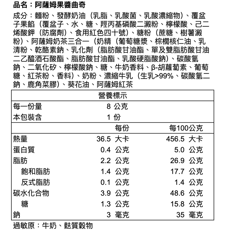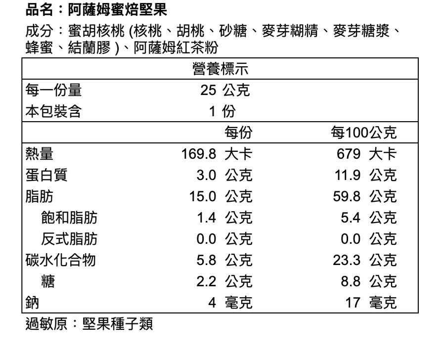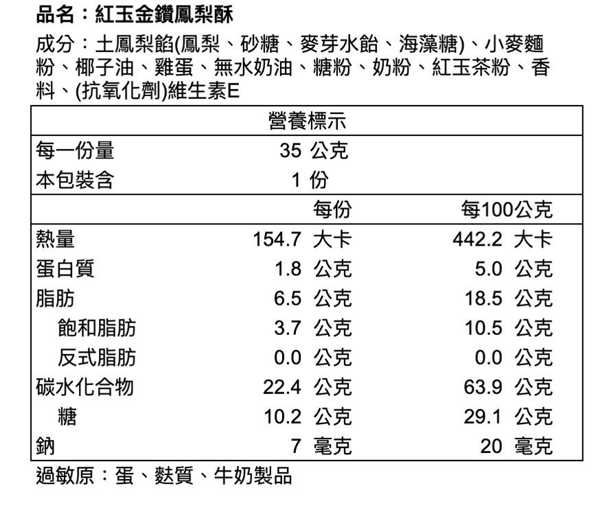※本產品與其他含蛋、牛奶、含麩質穀物、大豆、芝麻、花生、芒果、堅果類、種子類、魚類、甲殼類及其製品於同一產線生產,對此類食物過敏者請避免食用。