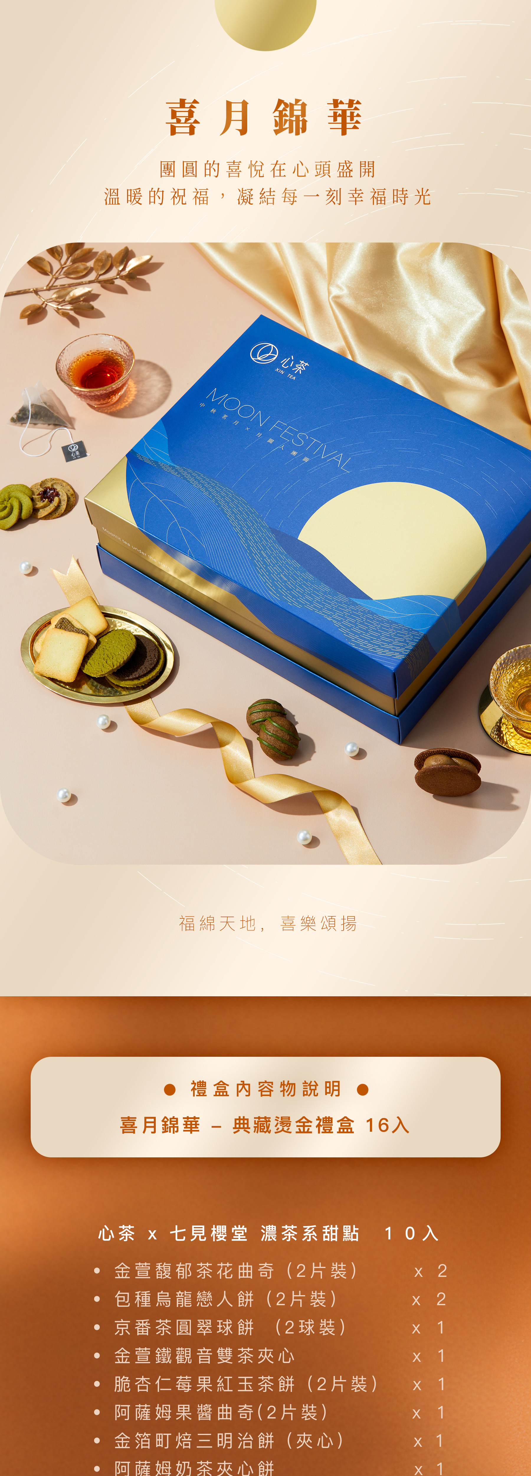 【 喜月錦華 】典藏燙金禮盒 - 餅乾X茶包 16入