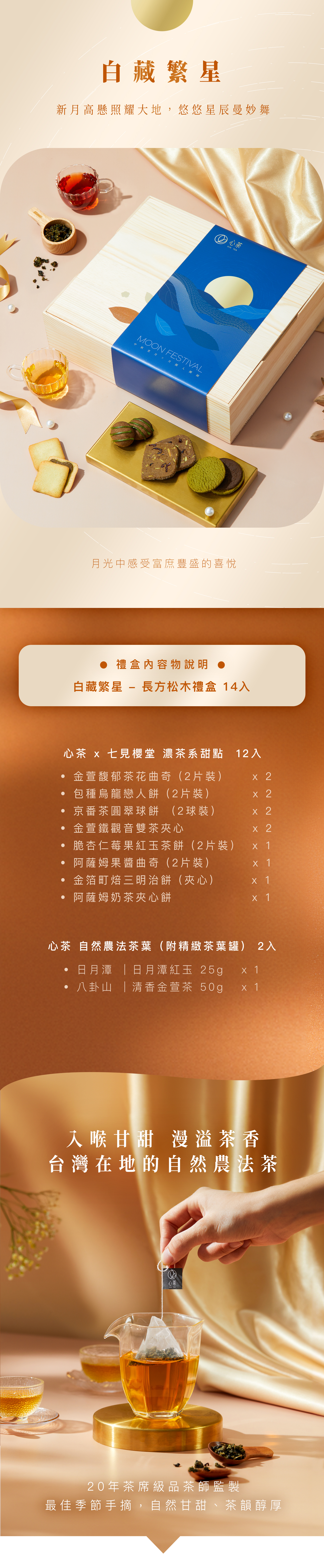【 白藏繁星 】長方松木禮盒 -餅乾X茶葉 14入
