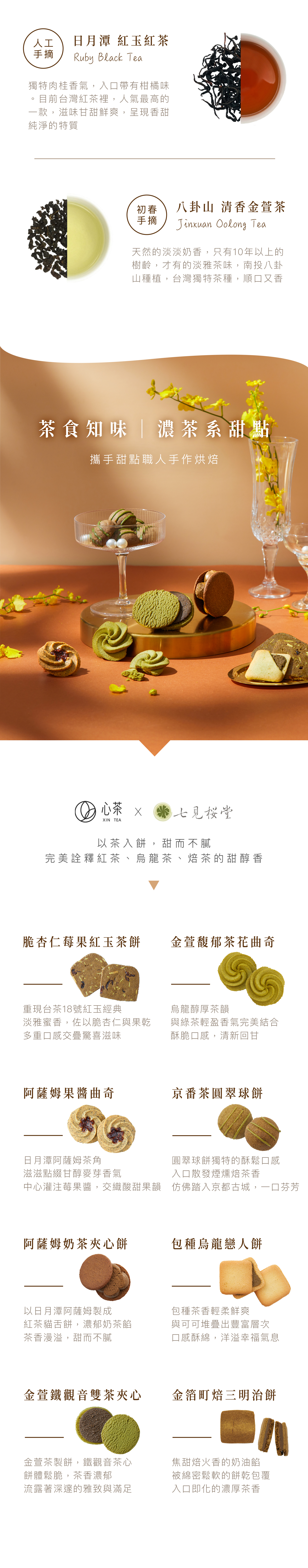 很受歡迎的紅茶、焙茶與烏龍茶,搭配 < 七見櫻堂 > 職人手製的茶餅乾,微微奢侈的日常,值得細細品味的一天。