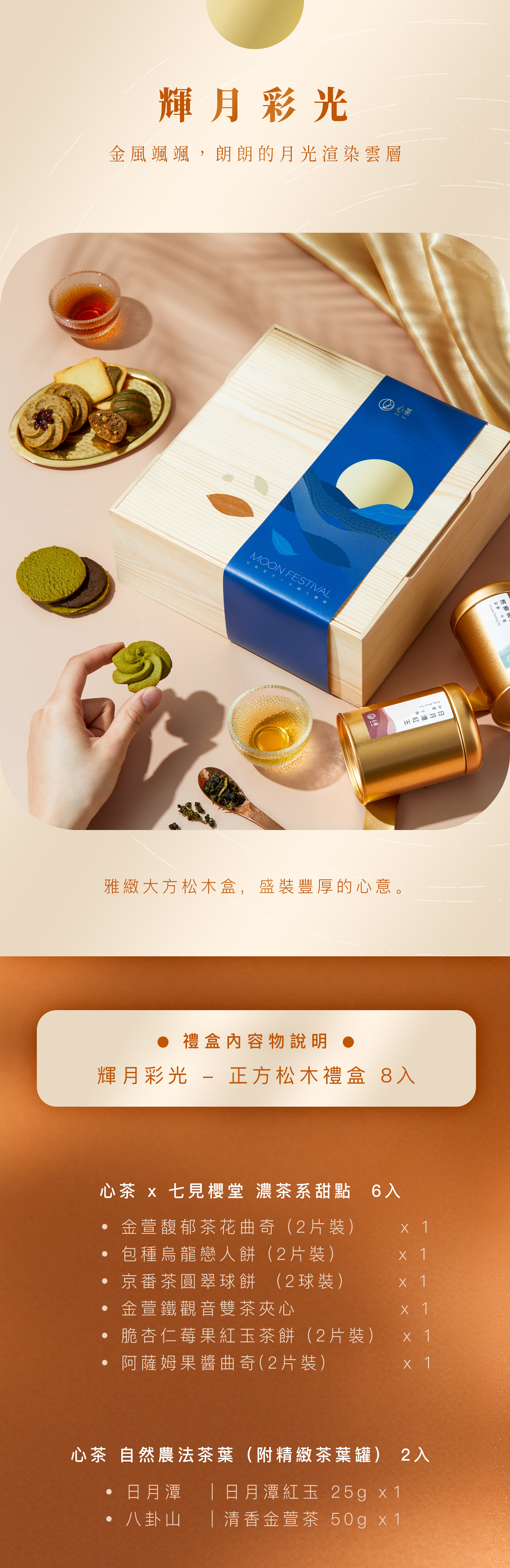 【 輝月彩光 】正方松木禮盒 - 餅乾X茶葉 8入