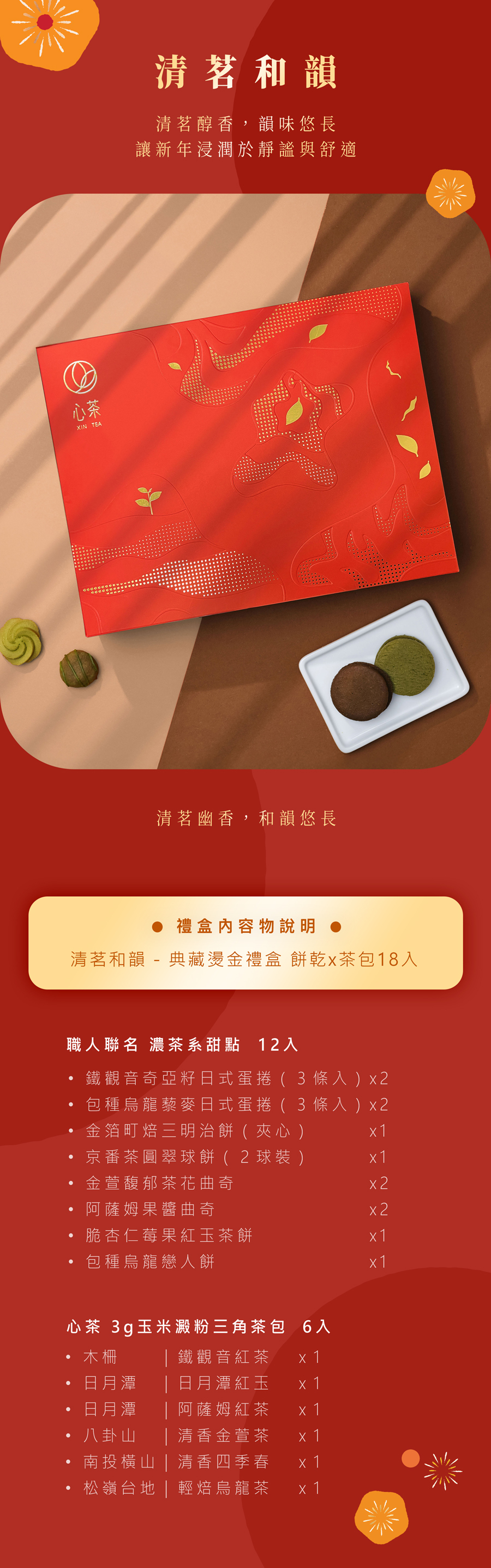【 清茗和韻 】典藏燙金禮盒-茶點x茶包18入/茶點17入