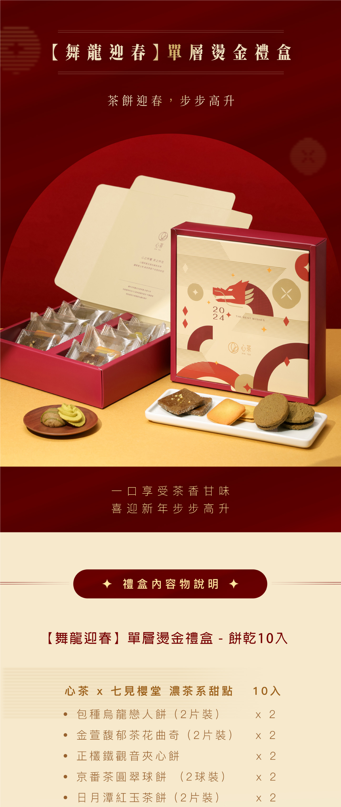 【 舞龍迎春 】單層燙金禮盒 - 餅乾 10入