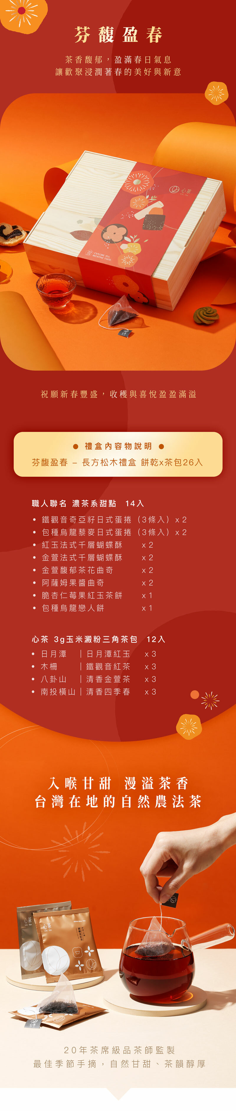 【 芬馥盈春 】長方松木禮盒 - 餅乾X茶包 26入