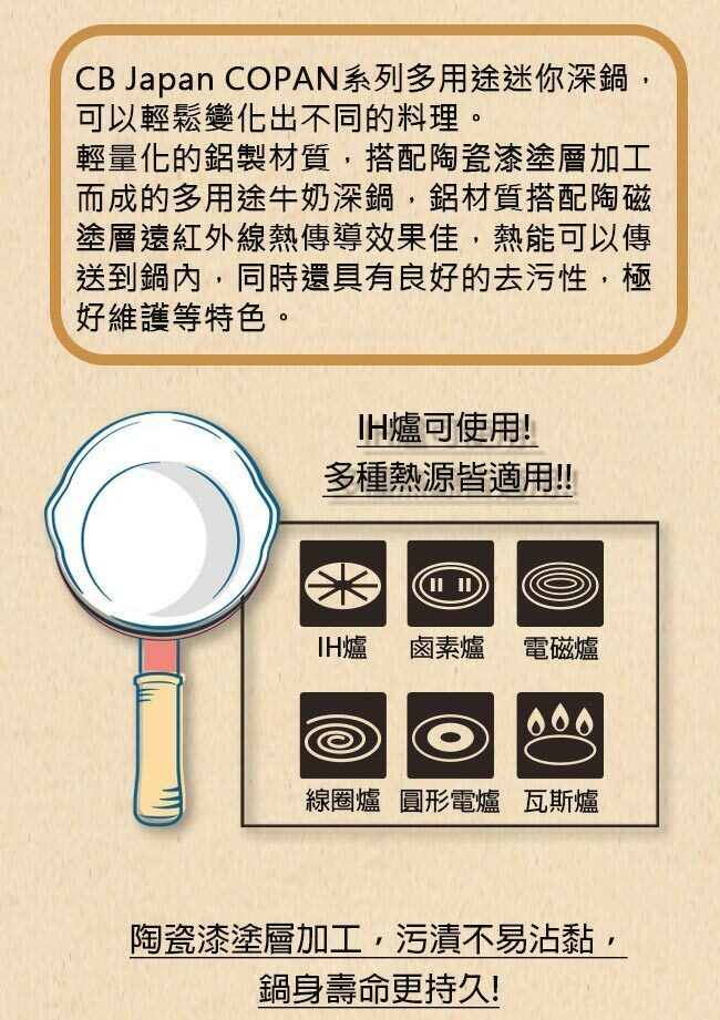.請勿用於卡式瓦斯爐上,避免放置在火爐上支撐架不穩,導致危險。